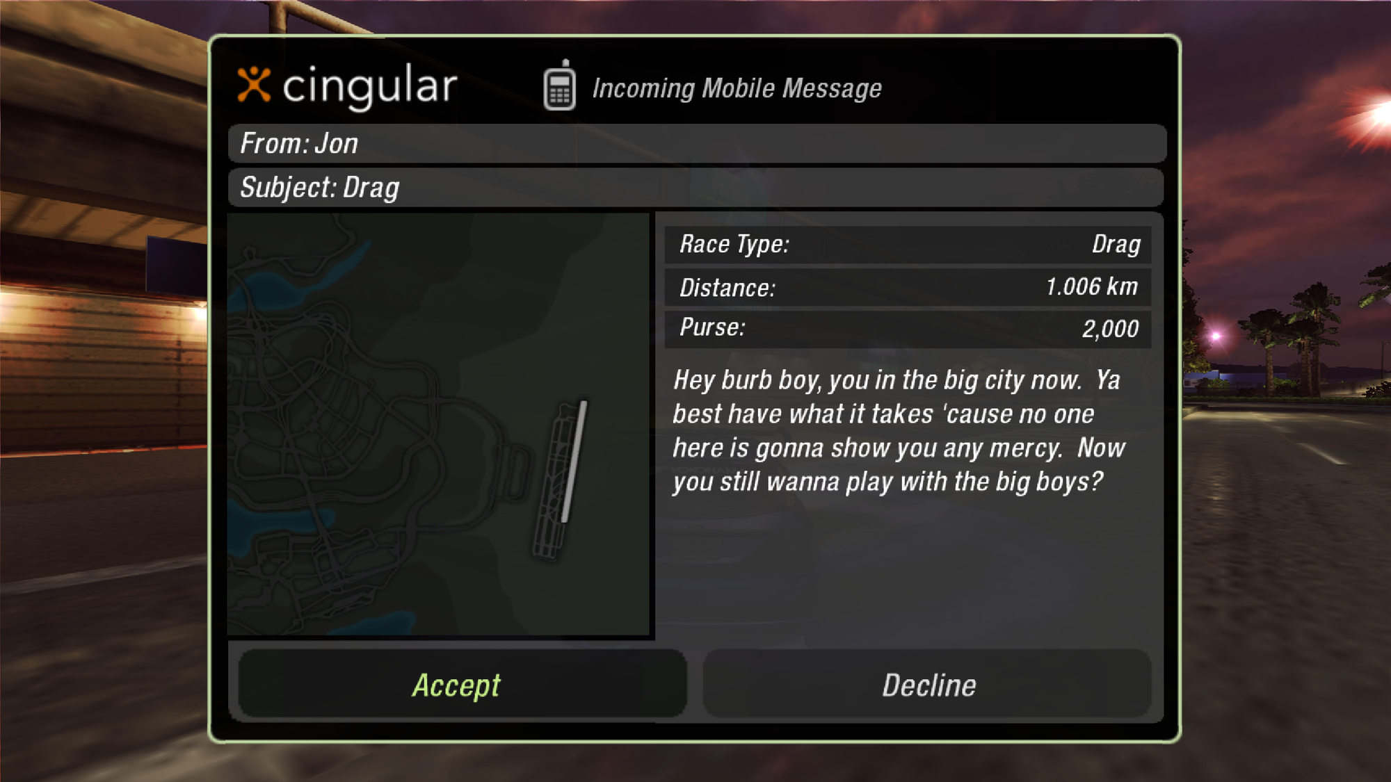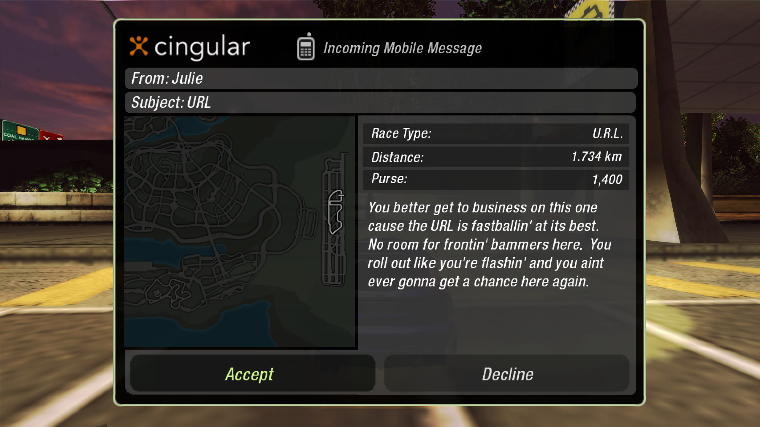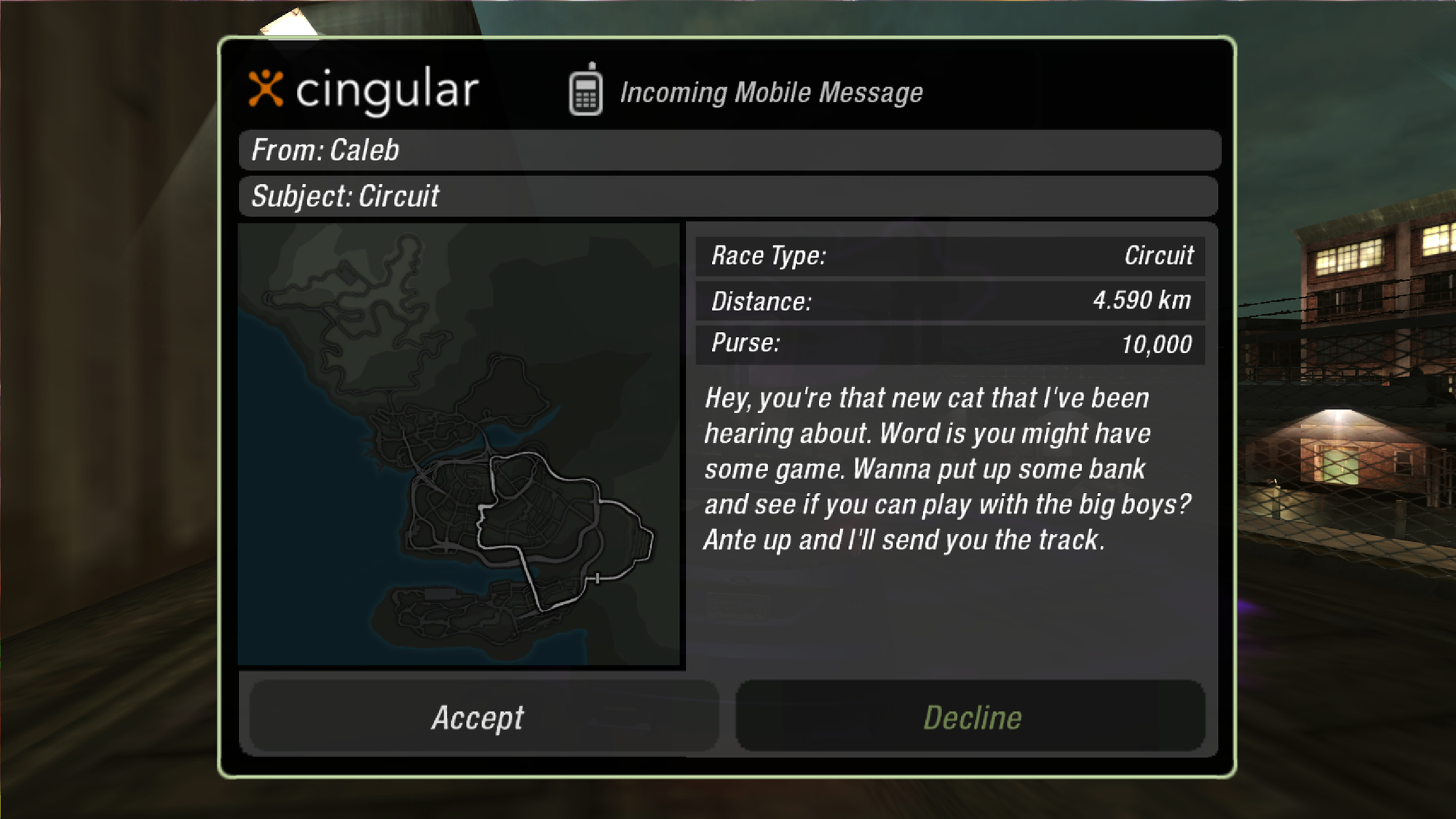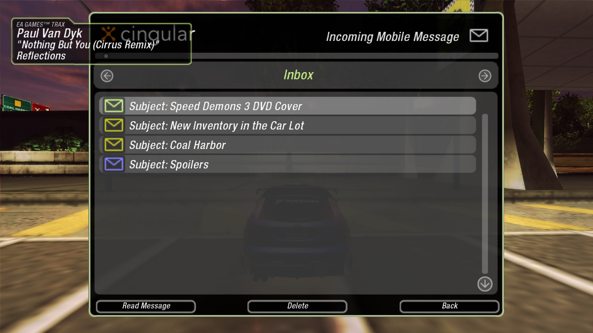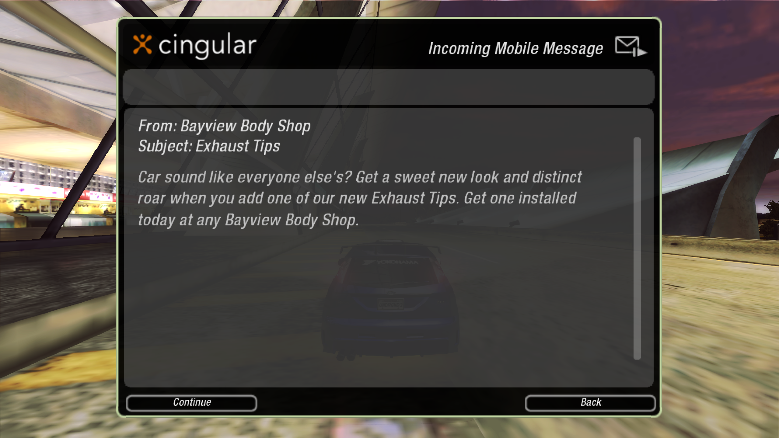 You also have a brand-spanking new Cingular text messaging system (what a world) - which features a questionable simulacrum of what a game developer thought the youth sounded like in 2004: