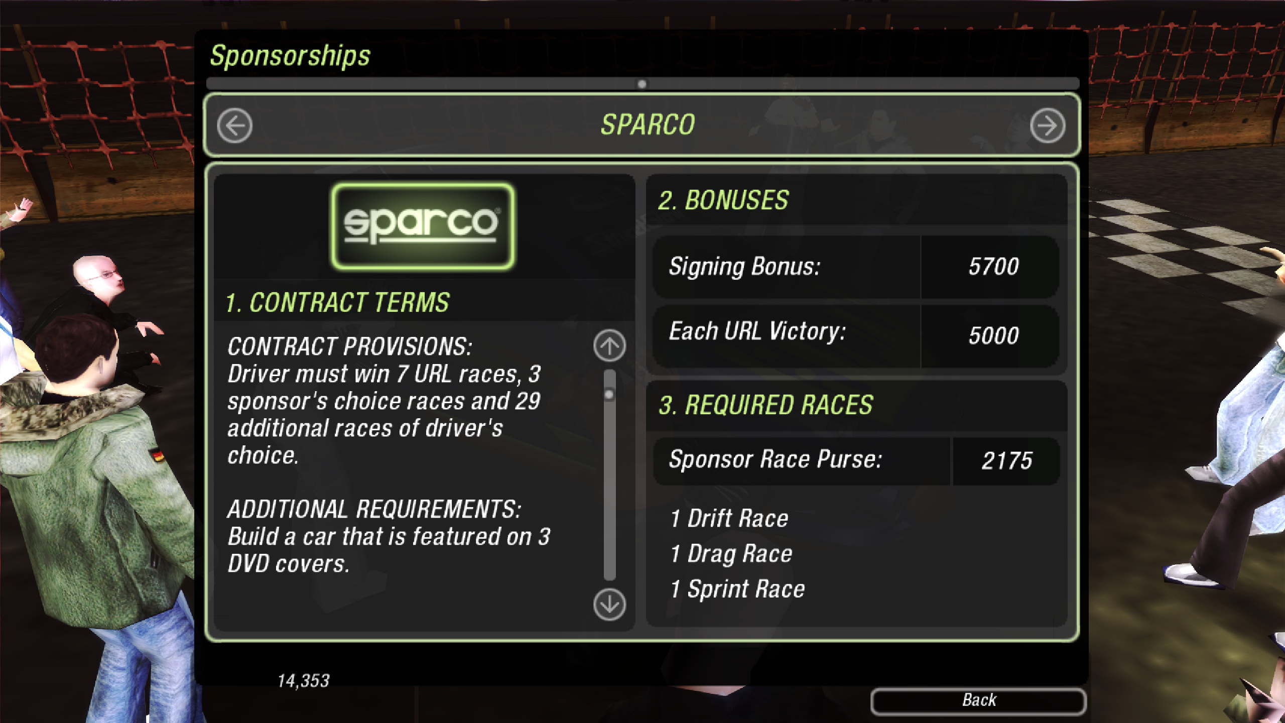 Rather than a ranking system, the player instead instead has to fulfil a sponsor contract for each phase of the game - these contracts represent real world automotive brands, so clearly someone made some money on the side.