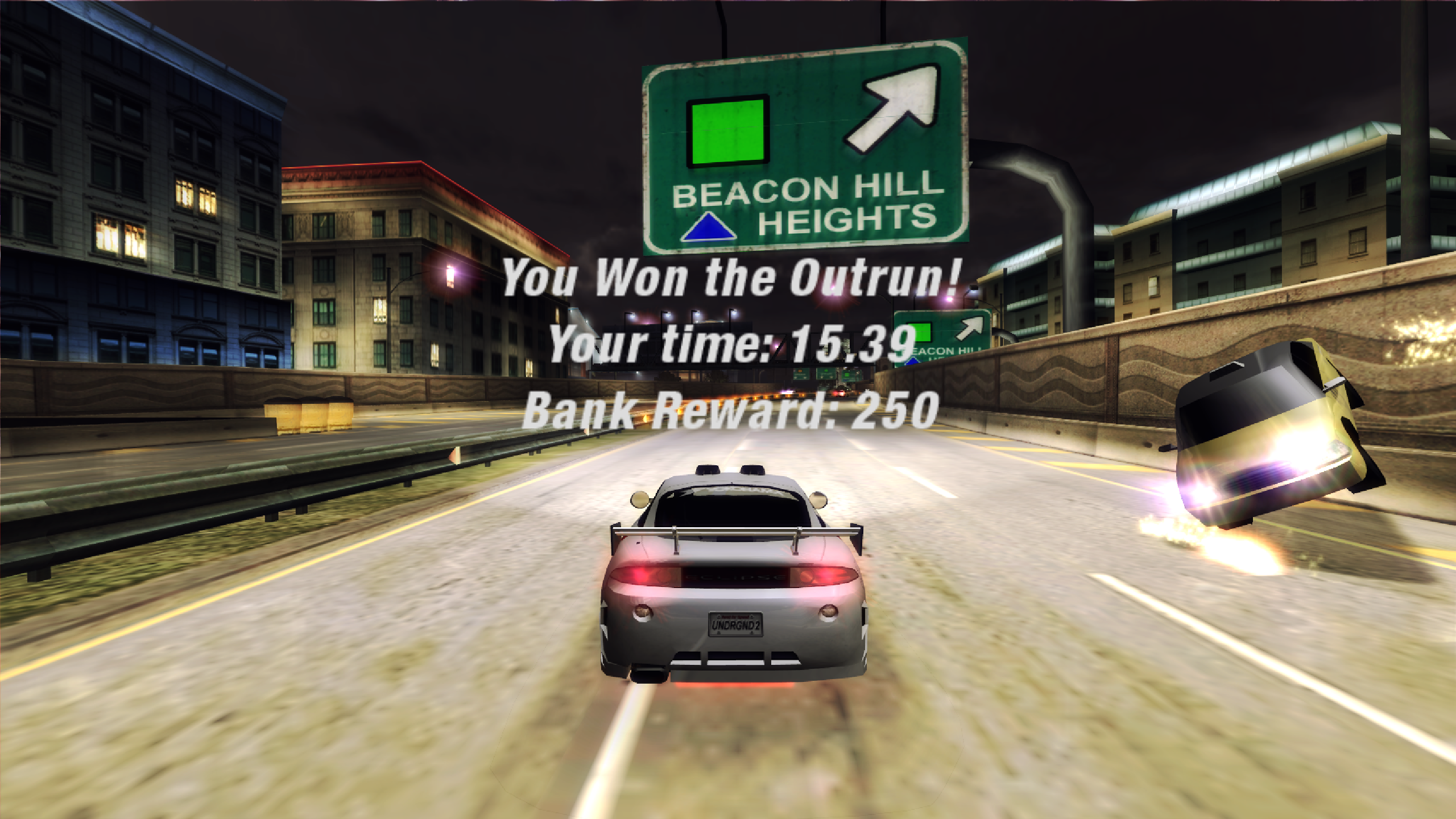You can also thunder around the highway which rings the main part of the city and wait for the NPC car to hit a van and then win that way too. Which is somehow even more fun, because sharp corners are for other people.