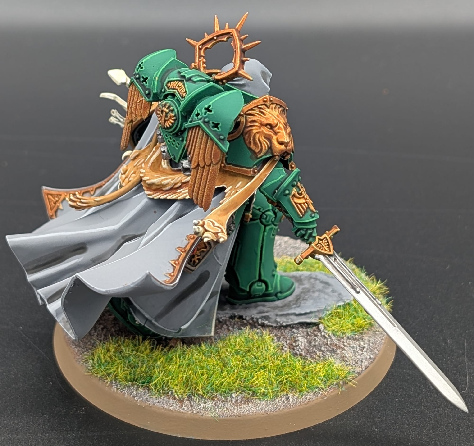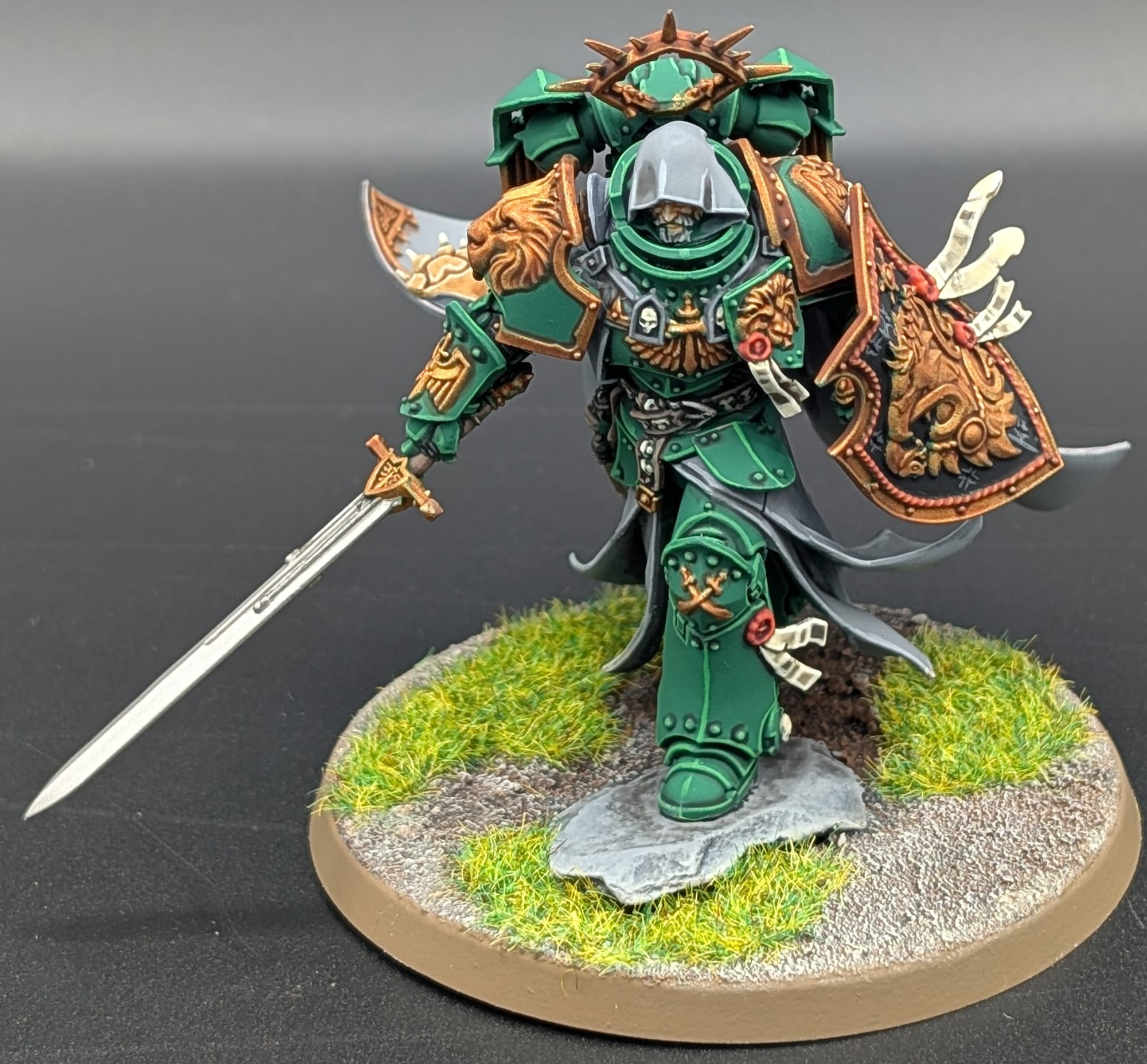 I stole the colour scheme from a user on the Dark Angels subreddit, who posted a sample image of a brighter Dark Angel, that featured a less harsh transition in the highlights.