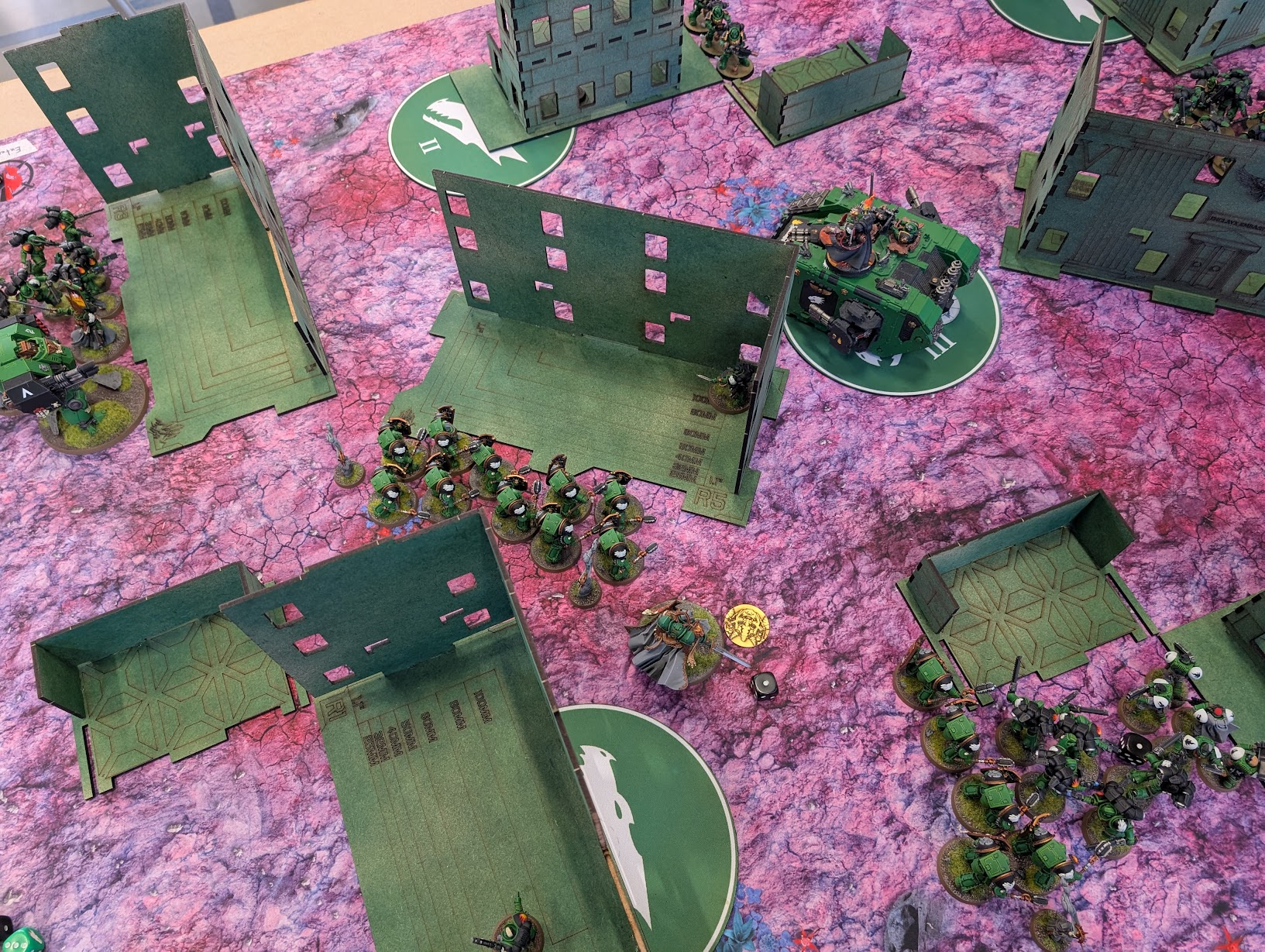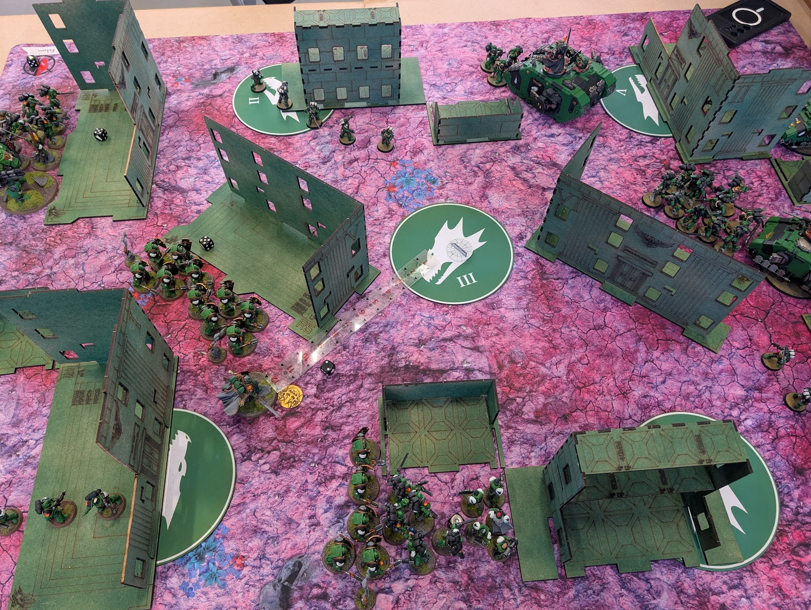 Despite my losses, I had lost few complete units, which allowed me to score bulk points from Purge the Foe, and I had taken a commanding lead when time was called at the bottom of turn four.