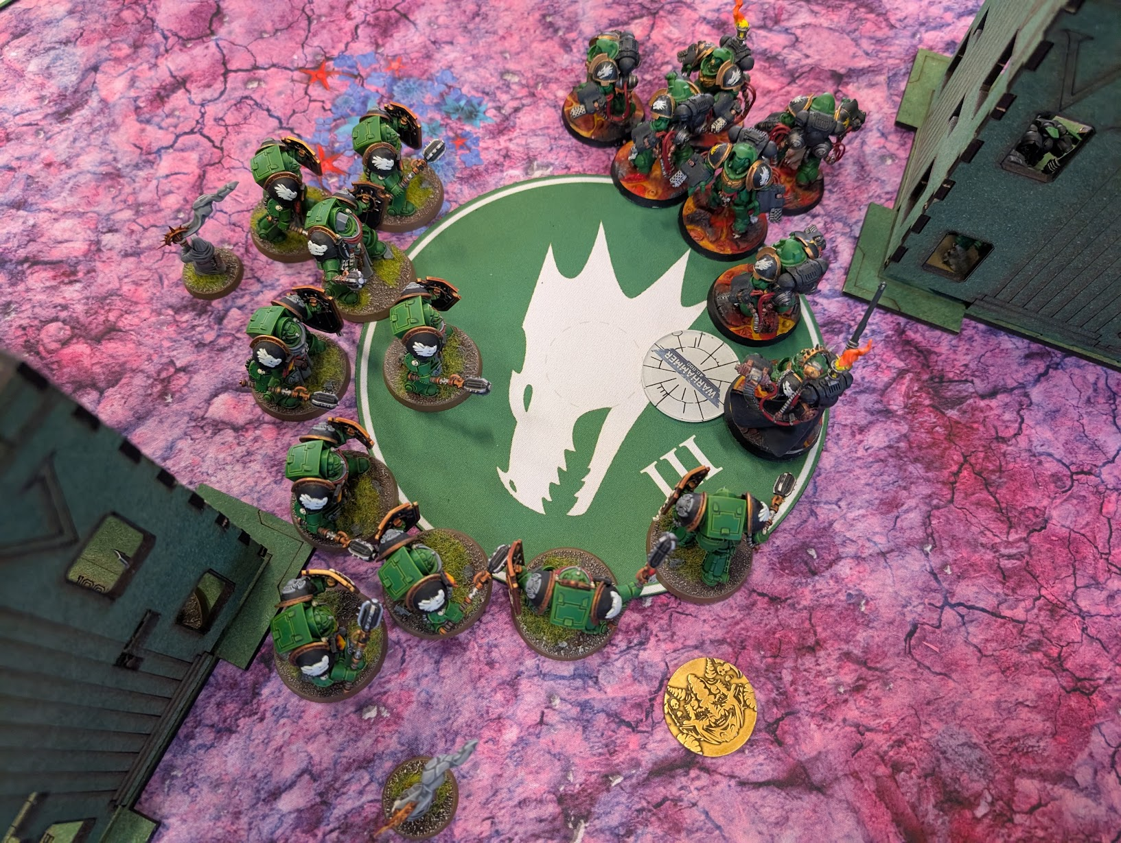 I thought I had done enough to seal the game, but it turns out with +1 to wound on S5 Bolt Rifles, Inner Circle Companions disappear pretty quick - and losing two Terminators to overwatch from Vulkan's unit seemed to shift the pendulum back in Josh's favour.