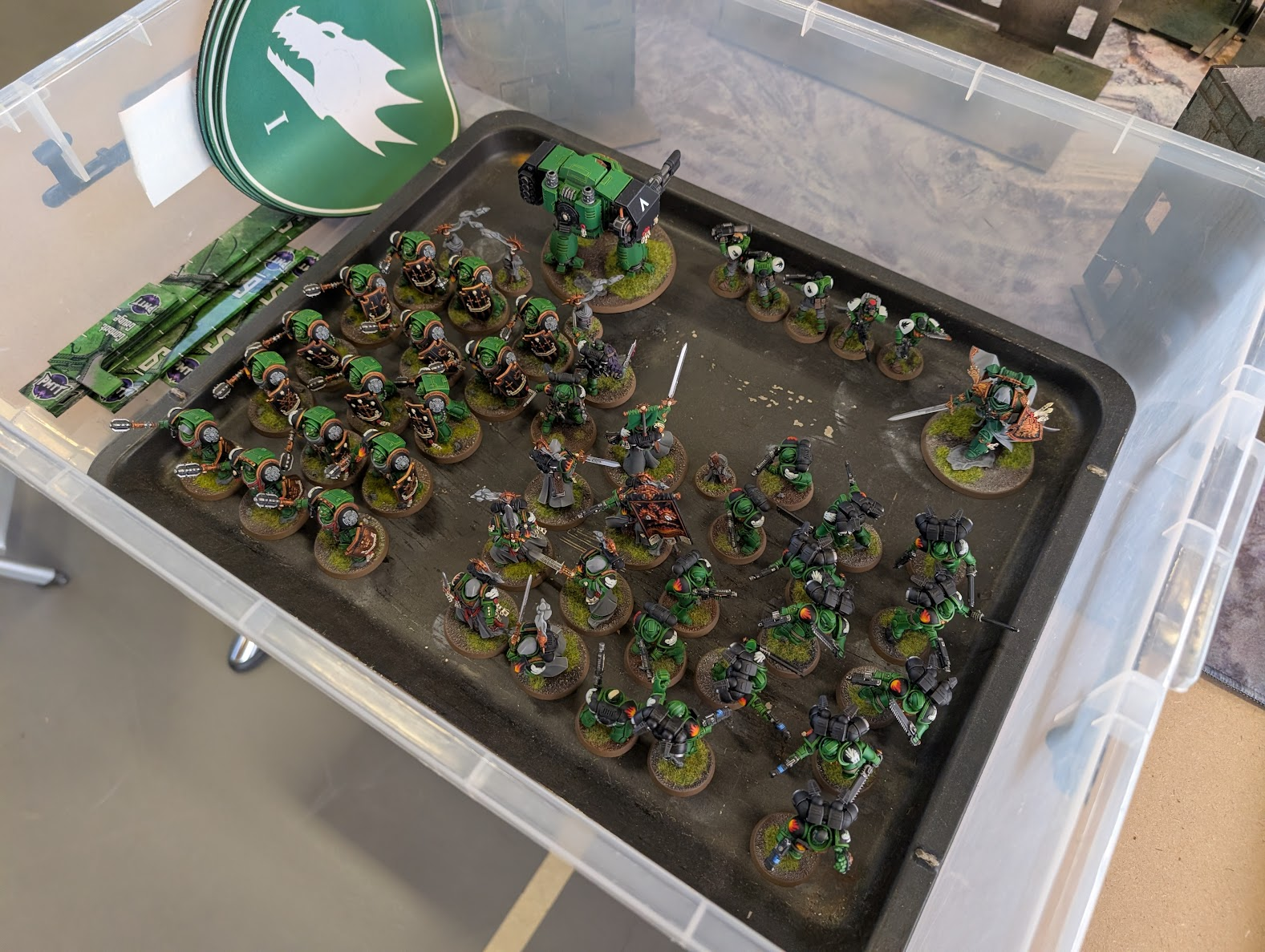 He was running Warpbane Task Force with thirty purifiers, Castellan Crowe, three Dreadknights (two Grandmasters), and two Brotherhood Librarians.